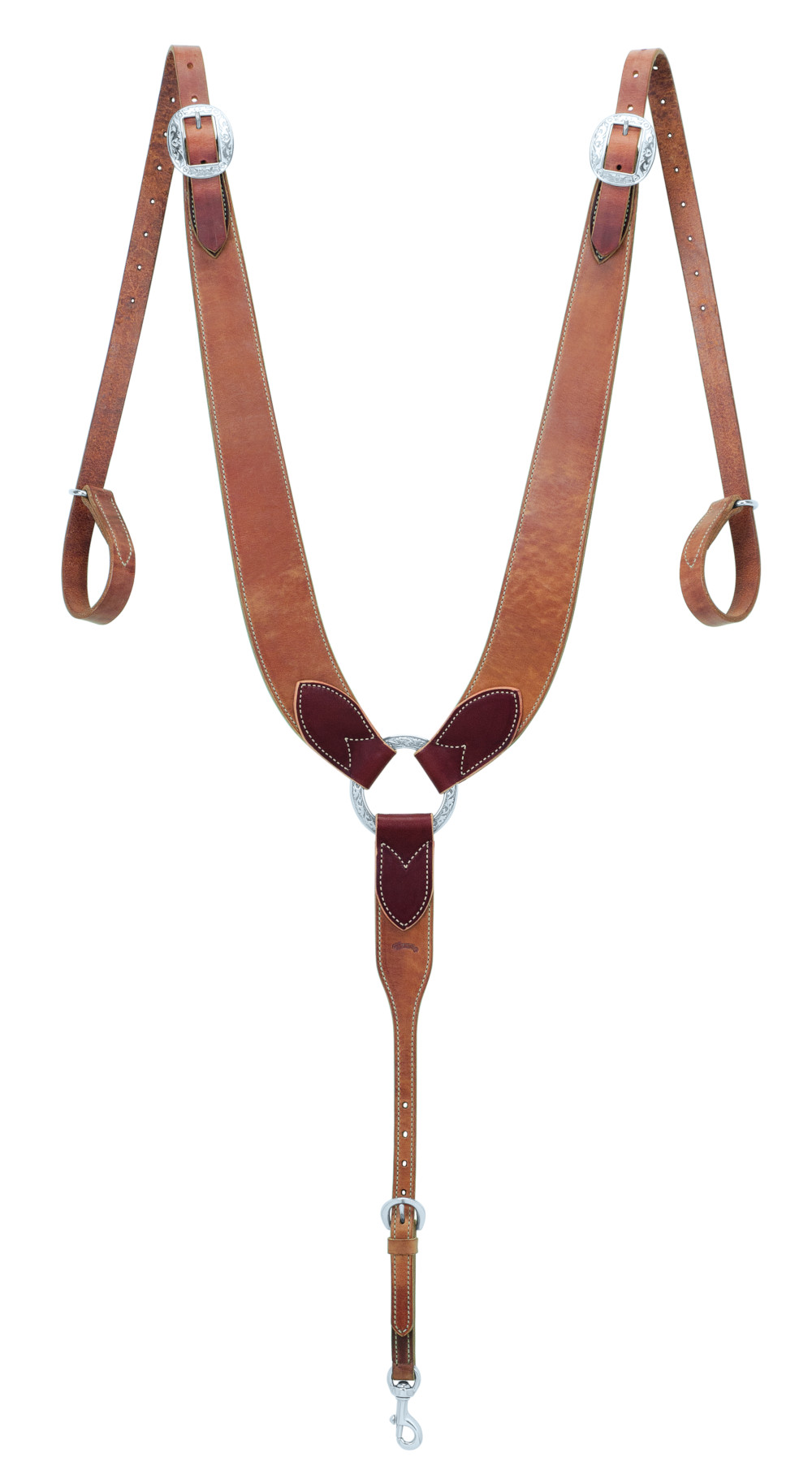 Weaver kvalitet i den tradisjonelle "Pulling Forstykke" stilen. Laget i beste Premium Harness lær med Laitgo festepunkter og festereimer. Rustfrie spenner og beslag med "floral" mønster i beste kvalitet.